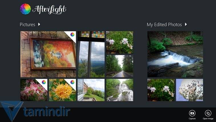 В Windows 8 версии Afterlight нас приветствует интерфейс, не отличающийся от мобильного. Первое, что привлекло мое внимание, а не инструменты, это интеграция с Instagram, которая позволяет редактировать фотографии на планшете или компьютере или передавать новую фотографию, которую вы сделаете, с помощью кнопки съемки, расположенной внизу. Подключив свою учетную запись Instagram, вы можете редактировать свои фотографии в Afterlight и ставить лайки своим фотографиям в Instagram прямо из приложения.