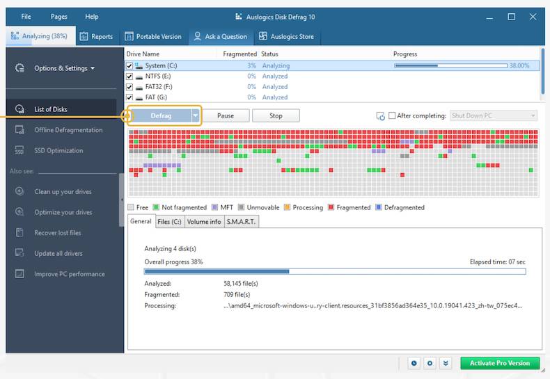 С обновленными функциями Auslogics Disk Defrag, новыми функциями отчетности, подробностями об именах и расширениях файлов, фоновой дефрагментацией, интеграцией с Windows Explorer и т. Д. со многими другими улучшениями.