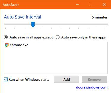 Небольшой инструмент под названием AutoSaver, который вы можете использовать в операционной системе Windows, может автоматически сохранять приложения. Он сохраняет приложения, которые вы добавляете в список, с указанными вами интервалами, что упрощает вам продолжение работы с того места, где вы остановились, в случае возникновения потенциальной проблемы. Вы можете начать использовать приложение AutoSaver, которое очень просто в использовании, без необходимости установки.