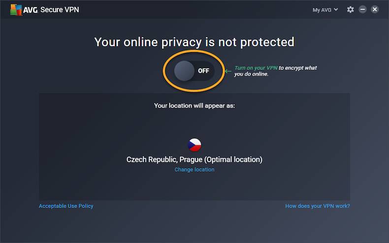 AVG Secure VPN (AVG VPN) прост в использовании; вы получаете VPN-соединение всего за три шага: