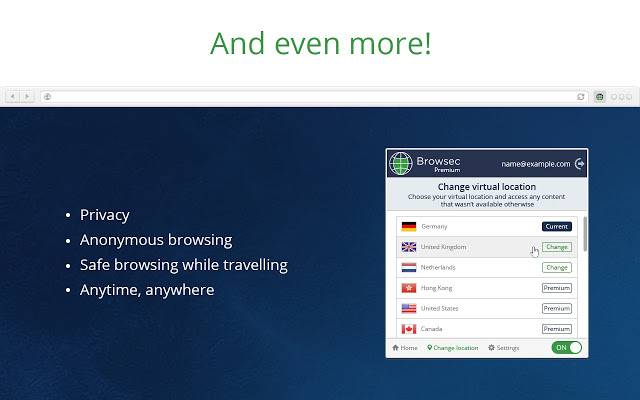 Browsec VPN, который позволяет вам подключаться к любому сайту из любого места, быстро и плавно, предлагает дополнительные функции в премиум-версии, как и любая программа VPN. Если вы хотите воспользоваться такими привилегиями, как большее местоположение, ускоренная скорость, лучшие серверы, приоритетная поддержка, вы должны платить 3,99 доллара в месяц.
