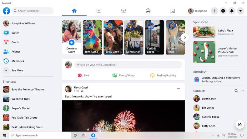 С помощью приложения Facebook для Windows 10 вы можете получить доступ к своей ленте новостей Facebook прямо с начального экрана и оставаться на связи со своими друзьями и семьей. Приложение, отражающее современный облик Windows 8, очень простое в использовании, так как оно имеет очень простой дизайн.