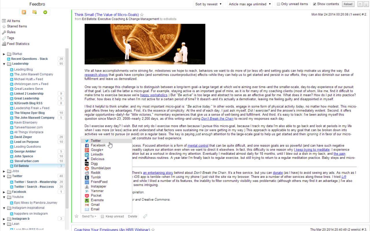 Feedbro — это плагин для подписчиков RSS, который вы можете использовать в Google Chrome.