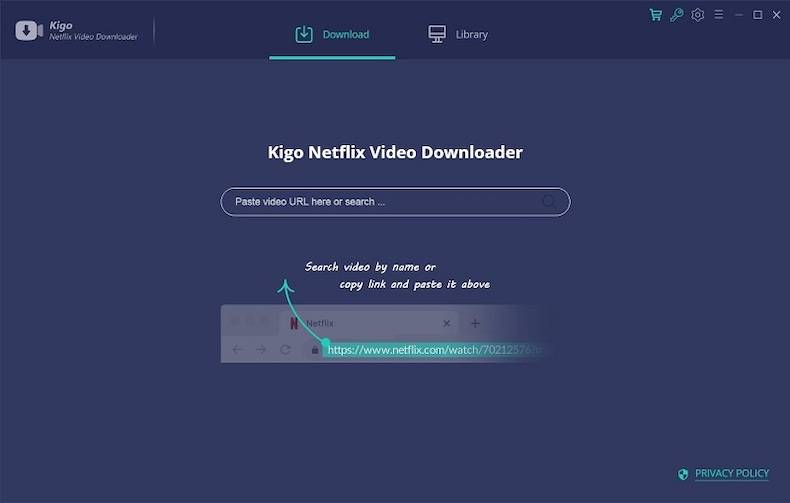 - Скопируйте URL-адрес видео или найдите видео для загрузки: просто скопируйте и вставьте ссылку на просмотр фильма / сериала Netflix, которую вы хотите загрузить. Вы также можете выполнить поиск видео для загрузки.