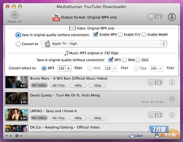 MediaHuman Youtube Downloader может конвертировать мультимедийные файлы в различные форматы. MP3, OGG и M4A для аудио, MP4 для видео, FLV и другие форматы, которые можно использовать.