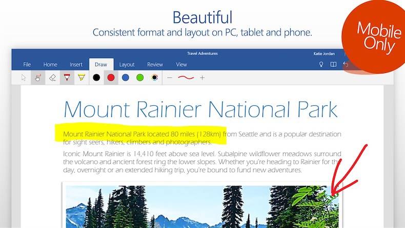 Microsoft Word - это наиболее часто используемое приложение Office со специально подготовленным интерфейсом для телефонов и планшетов, работающих под управлением Windows 10. Могу сказать, что Word Mobile предлагает более удобное использование на устройствах с сенсорным экраном.