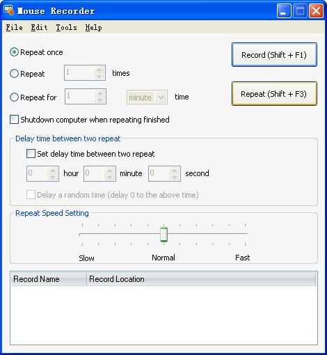 Программа для записи движений мыши автоматически выключает компьютер по окончании процесса. Вы можете установить время задержки между двумя повторениями или настроить скорость повторения. Вы можете записать более одного действия с программой, а затем выбрать его из списка.