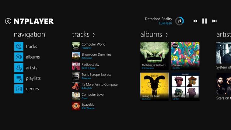 n7player - очень популярный музыкальный проигрыватель на мобильной платформе и, наконец, доступный и на платформе Windows. Я думаю, вы будете впечатлены функциями, а также интерфейсом музыкального приложения, которое вы можете бесплатно загрузить на свой планшет и компьютер с ОС Windows 8.