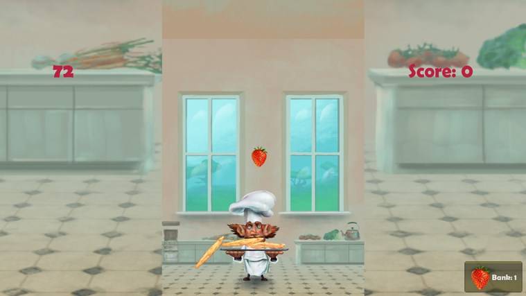 В игре также есть ограничение по времени, когда мы пытаемся поймать блины с одной стороны и сохранить клубнику с другой. Стараемся поймать как можно больше блинов за отведенное время. Хотя время от времени выпадающие на нас часы дают нам дополнительное время, но и выбрасываются они очень редко и в неподходящее время.
