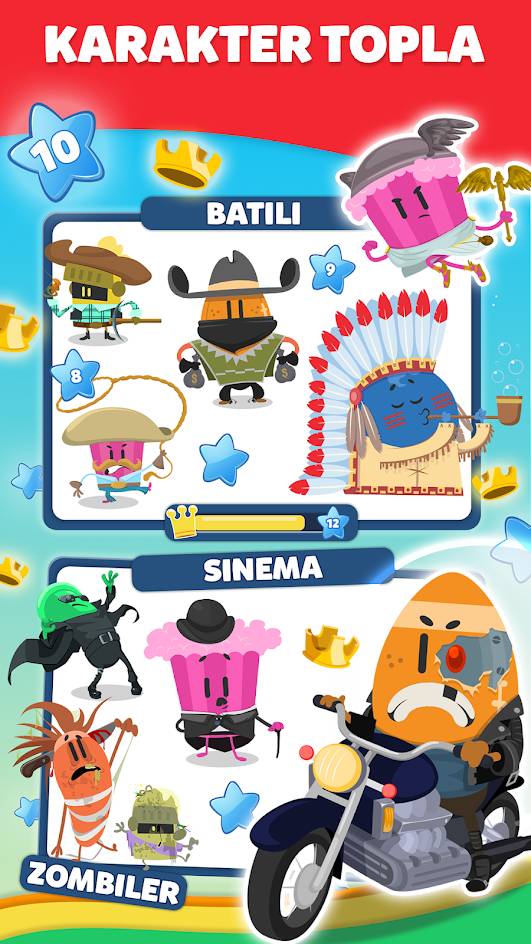 Вы сталкиваетесь с тысячами вопросов, которые переходят от простых к сложным в категориях «Искусство», «Наука», «История», «География», «Развлечения» и «Спорт». Как обычно, время в поисках правильного ответа из 4 вариантов быстро летит. В каждой категории вас ждут забавные персонажи. Вы собираете оригинальных персонажей, чтобы повышать уровень и получать потрясающие награды.