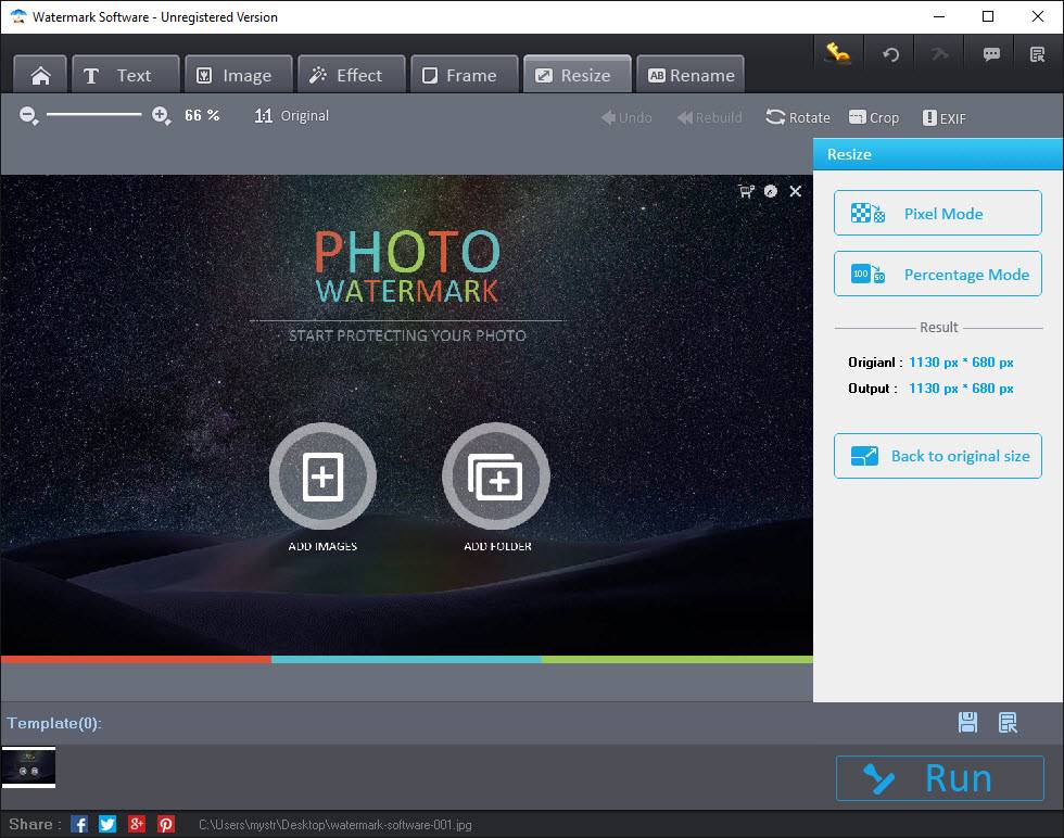 Программное обеспечение Watermark не только помогает нам добавлять водяные знаки, но и предлагает множество полезных опций для редактирования изображений. Вы можете вырезать изображение с помощью программного обеспечения водяных знаков и создать другой файл изображения, отделив определенные части от фотографий. С помощью инструмента изменения размера изображения Watermark Software вы можете увеличивать ваши маленькие изображения или, наоборот, уменьшать большие изображения. Также с помощью программы можно добавлять к фотографиям разные рамки. Если у вас возникли проблемы с просмотром или использованием форматов изображений, которые вы используете в другом программном обеспечении или устройствах, вы можете преобразовать свои фотографии в разные форматы с помощью функции преобразования изображений в программе Watermark Software.
