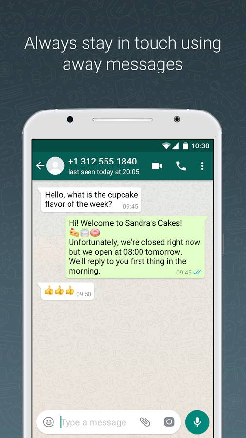 Вы можете определить, что связались с нужной компанией через WhatsApp Business, по зеленому значку подтверждения рядом с ее именем и зеленой подтвержденной деловой фразе. В профилях компаний есть объяснение рабочего времени, веб-сайтов, адреса и краткой информации, и вы можете увидеть, когда они в последний раз были онлайн на том же экране. Экран сообщений классический, но когда вы не в сети, вы можете подготовить автоматический ответ, учитывая возможность получения сообщений от ваших клиентов.