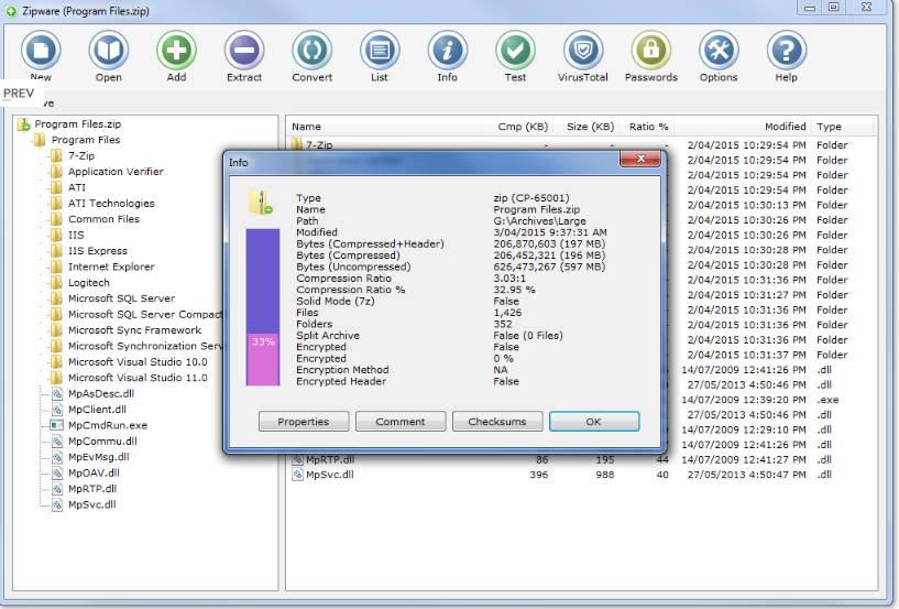 Zipware - это мощная программа сжатия файлов, которую вы можете использовать на своих настольных компьютерах. С программой, которая поддерживает почти все форматы архивирования, ваша работа становится проще, и вы можете легко сжимать большие транзакции.